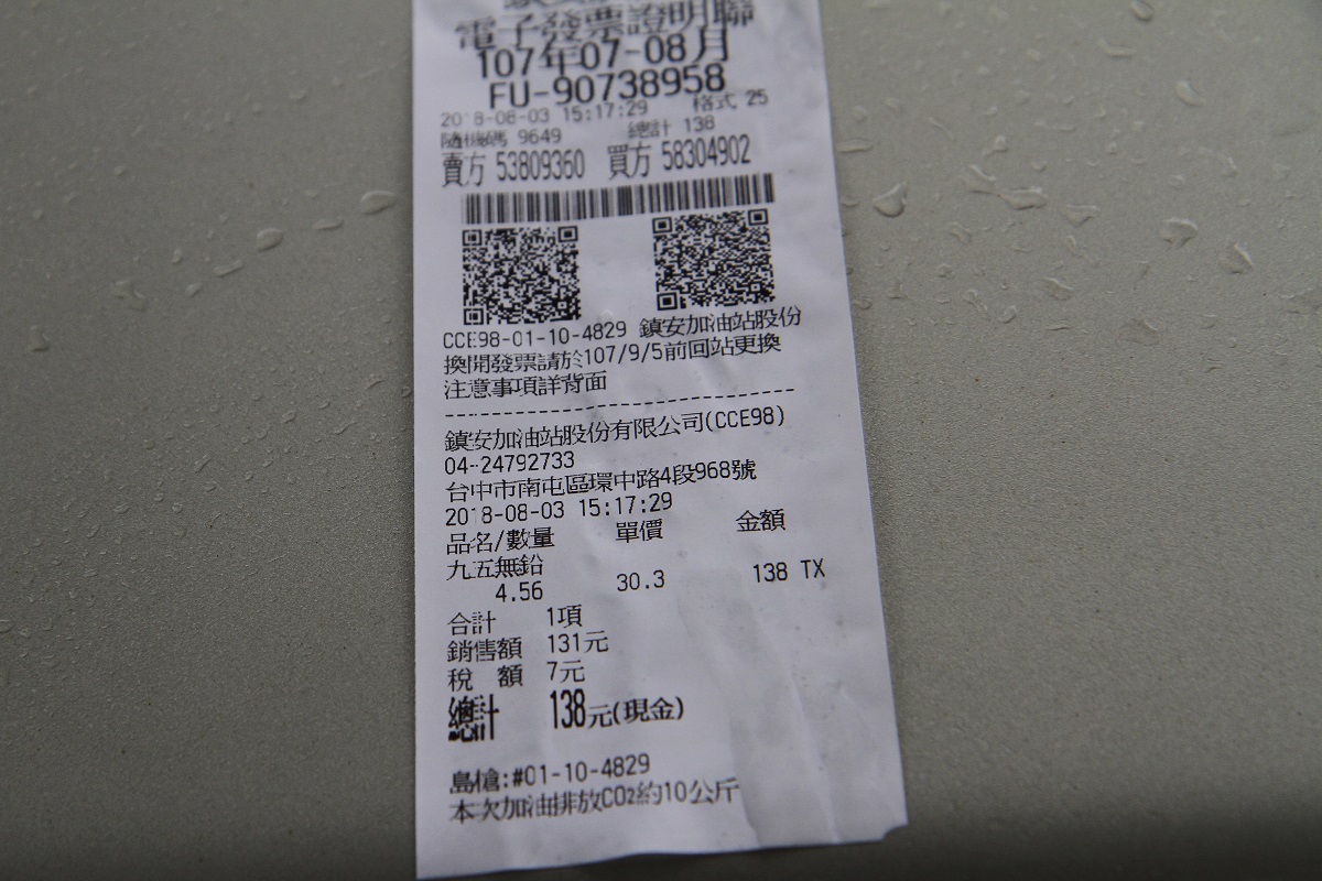 跑完73.8km的測試路線,回到加油站加油時,共加了4.56L的95無鉛汽油,換算油耗數據為16.18km/L,相較於第一回合測試出來的11.44km/L原廠數據,省油性的精進幅度達4.74km/L,出現這樣的數據,筆者也感到相當驚訝。