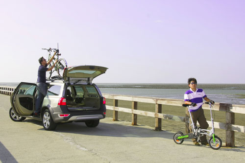 不是每個人都有勇氣、毅力與體力靠雙腳走天下,得有車幫忙才能快速移動,若是還想攜帶腳踏車,那這車可不能太小。XC70的車內空間很大,若是兩人出遊外加2部單車,只要後座打平,放進登山車再加台折疊車是綽綽有餘,連攜車架都免了。如果是全家同樂,原廠標配的車頂架即能搭配單車架使用。倘若造訪的風景名勝路況不優,擁有全時四驅、HDC陡坡緩降系統的XC70也能稱職扮演Crossover的角色,開車趴趴走,輕鬆到達目的地後再換單車深入當地風土民情,一舉兩得。