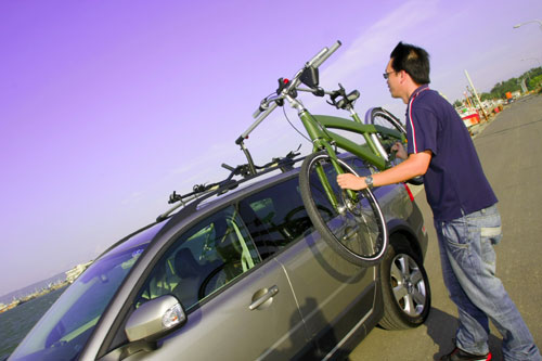 老是騎河濱公園也很無聊,一樣的景致、路況,久了喪失新意,騎車好像就只剩下運動健身這一項功能,看著動輒數萬元的單車只能拿來「自強不息」還真可惜,其實只要準備個攜車架,就能去不一樣的地方騎單車,一樣開車到墾丁玩,不如把車丟飯店、騎腳踏車壓馬路,帶有些許冒險犯難的挑戰精神上路,那個感覺肯定不一樣!