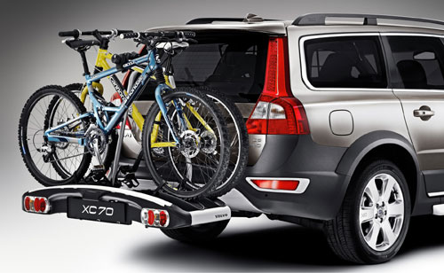 有了必備的器材,就是準備出發的時候,Volvo XC70原廠準備了乙只可以裝載26吋自行車的攜車架,利用槓桿原理將掛車架拉至車側,固定把手及坐墊後即可輕鬆抬昇至車頂,然後再固定前後輪即可,不過建議兩個人合作比較安全。