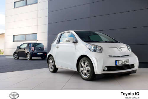 iQ是Toyota針對都會通勤代步所設計的迷你概念車,首次發表於2007年法蘭克福車展,雖然車長不到三米,但是在創新的內部空間利用下,仍可乘坐三名成人及一位孩童,且極速可達160km/h。而在這次巴黎車展上,iQ穿上了新裝,車頭造形較上一代iQ圓潤許多,雖然仍為概念車,但是從二代iQ的完裝程度來看,2009年量產的機會頗高。