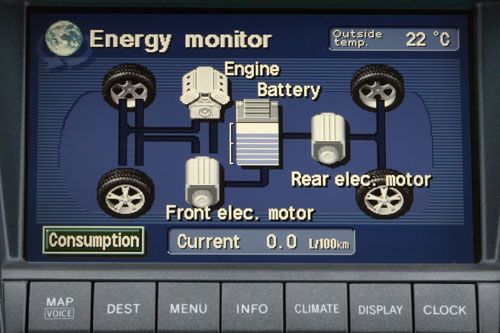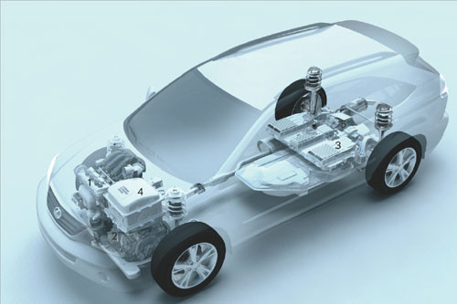值得一提的是,堪稱為Hybrid領導者的Toyota,其油電混合車型設有一個EV Mode為全馬達帶動模式,也就是在輕踩油門的49km/h以內,系統會儘量將驅動模式固定為馬達,如此對節能當然有相當大的幫助。在此目前Hybrid系統的發展主要是致力於電力的存放,馬達部份像RX400h單負責前輪驅動的MG2就有165hp/34.0kgm的出力,但它必須間歇性的啟動引擎充電,否則一切就完美至極了。