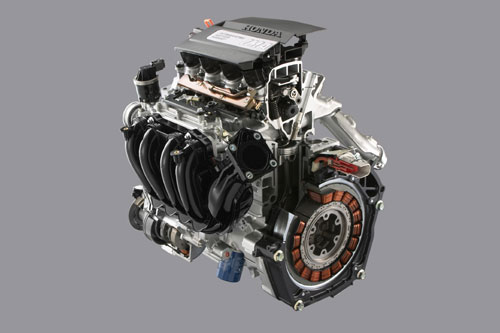 3-Stage i-VTEC+IMA的動力源,引擎方面是使用SOHC直四8V 1.35升的設計,它有三種油路來切換VTEC,因此運用五組搖臂做連接或分離的動作,煞車時VTEC會讓汽缸休止,且減速能源回生量增加了10%。在電力系統的改良上,Honda特別採用由高密度線圈、高性能磁石構成的馬達,故出力也提高1.5倍,甚至掌管馬達作動時機的專用ECU,均為高精度的數位控制,加上電池更為小型、耐久以及輸出提昇30%,這部份的出力便具備20hp/10.5kgm,如此再相加引擎的動力95hp/12.5kgm,總和能達到115hp/17.0kgm的水準。