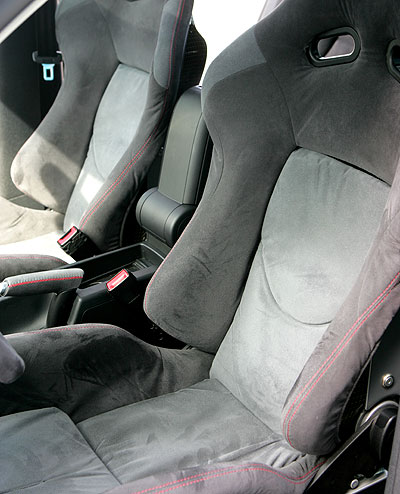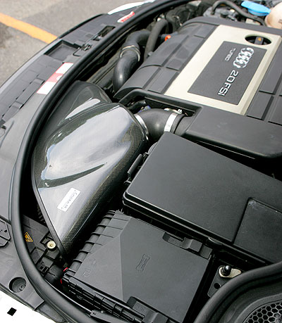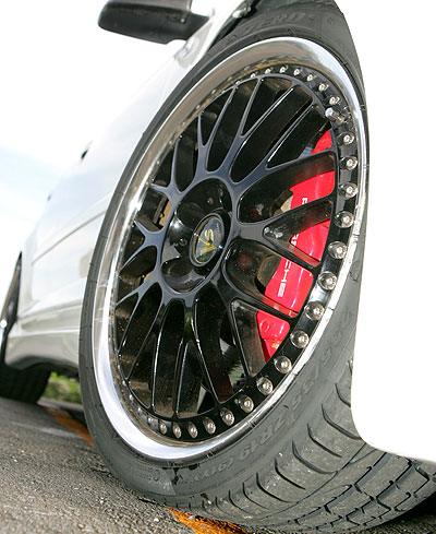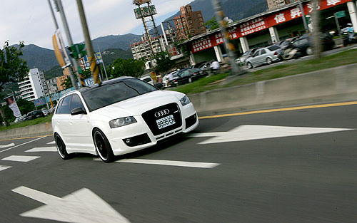 此外,對外觀視覺占了極大比重的「足下功夫」也不能馬虎,該車為了將前輪胎升級成235/35R19,且須同時容納Porsche大六活塞卡鉗,因此特別向Work訂做了兩顆三片式鍛造前輪圈,讓輪圈唇深稍微淺一些,如此便能與後輪圈使用相同盤面,改裝Audi可不能出現前後輪款式不一的糗事。總覽全車,唯一沒使用名牌的東西只剩下一對可調式功夫龍怪獸椅,不過筆者試乘的感覺完全不輸知名大廠,無論是桶身的硬度、包覆性和麂皮的止滑性都令人滿意。