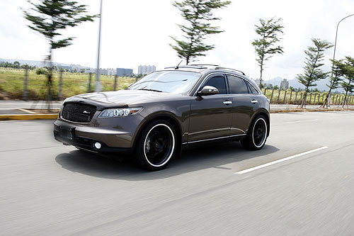 | 筆者認為Infiniti FX35是輛相當具有Sporty風格的LSUV,尤其加裝空力套件及換上大輪圈之後,更是顯得相當凶悍。 |