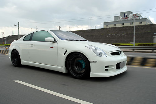 雖然腹內套件皆已強化,但此車基於一般道路使用,因此增壓值僅設定在0.5bar,進氣冷卻器選用Type S式樣,藉以降低原本VQ35DE引擎居高不下的進氣溫度壓。另外VQ35原廠採用電子節氣門,在訊號的擷取上也較麻煩,昶和採用自家頂級產品V Pro,採擷取油門踏板訊號來正確掌握節氣門開啟角度,傳動系統雖然維持原來的自排變速箱,但已將整顆變速箱寄到國外進行Pro Torque強化扭力轉換器的改裝,來對應大幅提昇的輸出力道。此具引擎在之前本刊採訪時曾拉出381.8匹最大馬力,扭力更是創下59.7kgm驚人的輸出,簡直可以直接拿來當拖車頭也不為過。