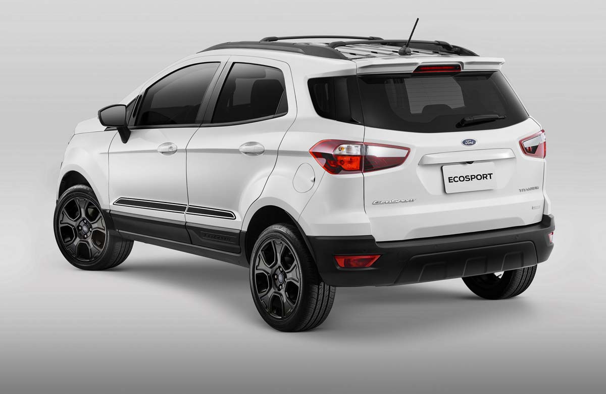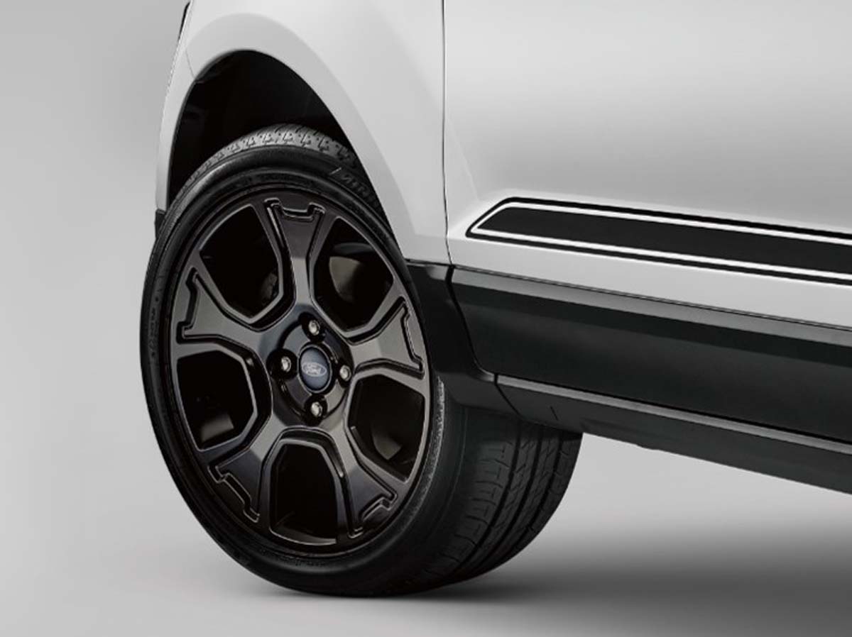 Ford EcoSport「布萊克•懷特」限量版外觀配備「布萊克•懷特限量版套件」,包含懷特白後擾流尾翼、布萊克黑型格輪圈、魚眼投射式頭燈、尾燈、霧燈飾蓋、盾形水箱護罩、車頂、車頂行李架∕行李架橫桿、前∕後下護板(前下護板運動化飾蓋)、專屬車側飾條以及EcoSport專屬字樣側護板。在黑白雙色的配搭之下,營造更具運動化與極簡時尚的個人駕馭風格。