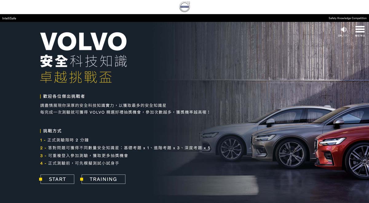 「VOLVO 安全科技知識卓越挑戰盃」限時兩分鐘,挑戰者需在 2 分鐘內快速答題,每答對一題則依「基礎」、「進階」與「深度」等不同難度獲得 1、3、5 顆「安全知識星」。答題時間到時則依所累積「安全知識星」數量作為評分依據,依得星數量依序為「諾貝爾級」、「愛因斯坦級」、「瑪麗亞‧居禮級」及「牛頓級」,所有挑戰者皆可不限次數重覆參加,每位挑戰者皆可在個人戰績頁面蒐集不同等級獎章,不只可以提高獲獎機會,更有機會在挑戰排行榜名列前茅。