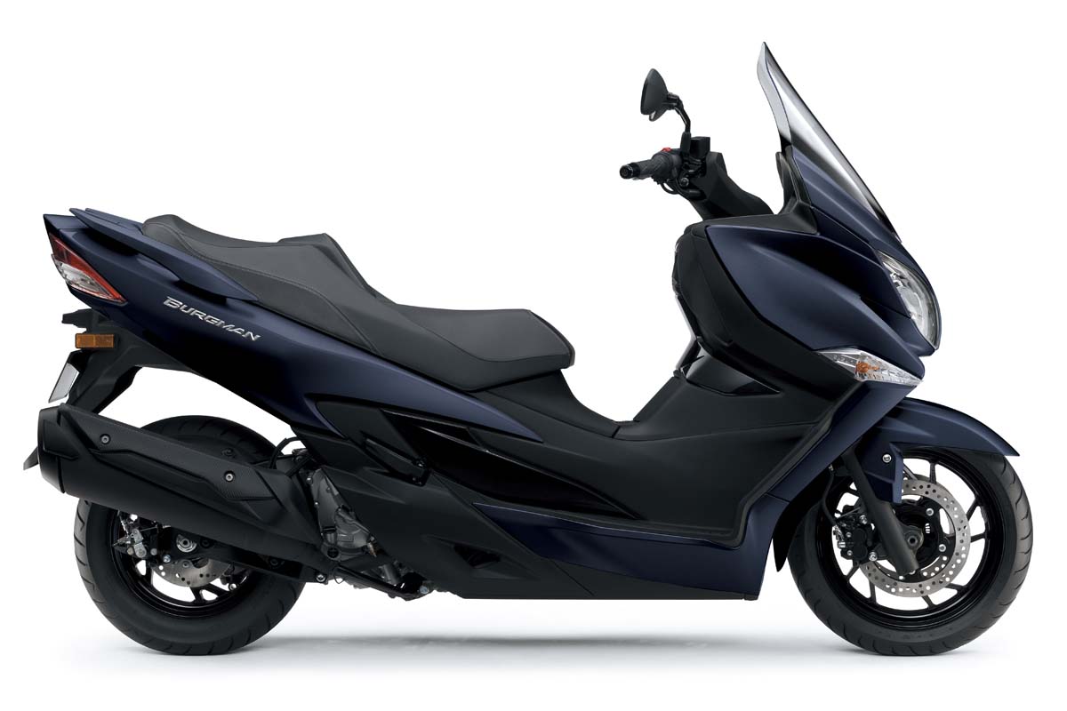 SUZUKI全新BURGMAN 400,承襲以往BURGMAN系列的 Elegant 風格,揉合了日本設計的元素與整體優雅的造型;2019年式新增消光藍配色,低調內斂的色彩與簡約俐落的車身線條,襯托出獨特的日系風格。