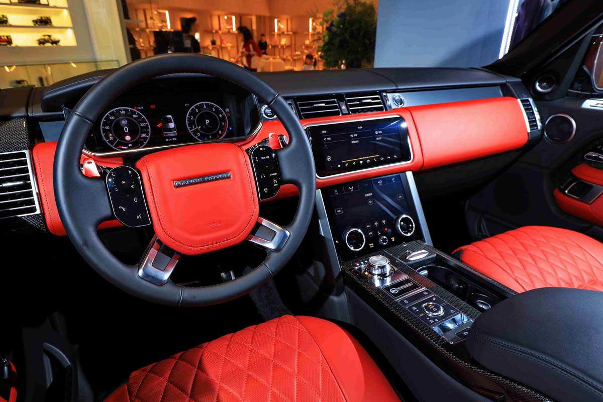 首度登台的Range Rover SVAutobiography Dynamic,採用SWB標準軸距設定,搭載5.0L V8雙轉子機械增壓汽油引擎,配備CommandShift™ 8 前速 ZF 手自排變速系統,具備565PS最大馬力與700Nm最大扭力,0-100km/h加速僅需5.4秒。全車融會眾多SVO特製化設計,包含專屬石墨黑Atlas徽飾與外觀飾件、22 吋深灰鑽石切面鍛造鋁合金輪圈與紅色高性能煞車卡鉗,搭配較Range Rover標準版本降低8mm的特製化高性能懸吊系統,盡顯奢華性能風範。此外,內裝材質與設計風格更展現無與倫比的精湛工藝,包含鑽石菱格紋 Semi-Aniline 半苯胺皮革雙色座椅與專屬紅色皮革內裝,結合極具視覺衝擊的性能感受與極致舒適的駕乘體驗;同時針對懸浮式排檔座、引擎啟動按鍵及座椅扶手等鋁合金飾件,皆採用細膩的滾邊鋪陳,搭配頂級皮革包覆方向盤與紅色換檔撥片,輝映君臨天下的全球休旅王者風采。