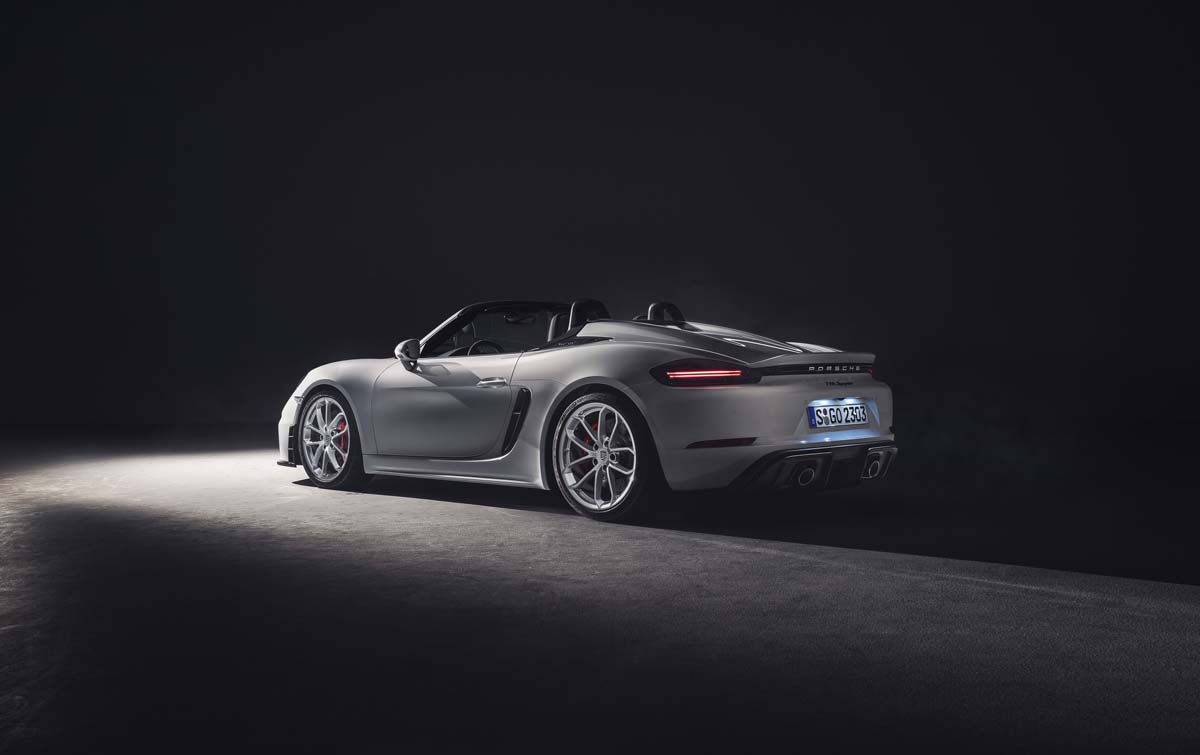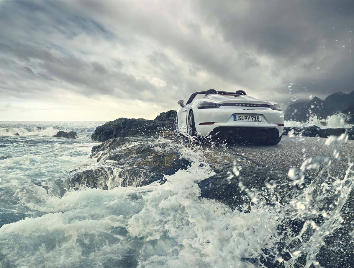 全新 718 Spyder 是強調駕馭樂趣的純種跑車,配備能輕鬆應對高速的輕量化敞篷車頂。車款承襲 Porsche 550 Spyder、718 RS 60 Spyder 等知名敞篷雙座跑車的輝煌歷史。不論開關篷,718 Spyder 都擁有令人屏息的絕美輪廓。敞篷車頂適合日常駕駛,簡單幾項步驟就能收折至行李箱蓋下方。有別於 GT4,718 Spyder 擁有在 120 km/h 時自動升起的後擾流板。受惠於功能性導流器,718 Spyder 也是 Boxster 家族中首款產生後軸下壓力的車型。