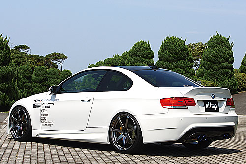 正統E92 M3在造型上的重點就是車尾上方以及車頭下方的處理,但是萩原風格卻不是這麼做的,除了對應車身高度之外,前輪胎由245/40-18變更為255/30-20的大口徑尺寸,訴求感非常明確。