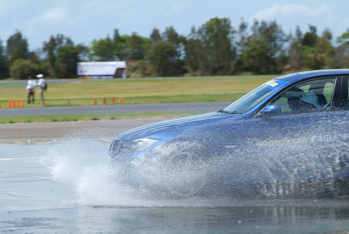 也許是因為兩車濕地停煞風險較高,所以固特異選擇親自示範Eagle F1 Asymmetric與同等級商品的差異,因此用上兩輛相同的5系列,相同的制動系統即可將誤差值降到最低,而可影響成績的就剩下駕駛者及輪胎了,固特異表示,Eagle F1 Asymmetric與其它同等級產品在溼地的煞車距離上,以80km/h踏下煞車到車輛完全靜止,Eagle F1 Asymmetric只需37.7公尺,而其它同等級產品則是分別耗費41.4公尺及41.7公尺,最大距達差更是達到4.0公尺之譜。