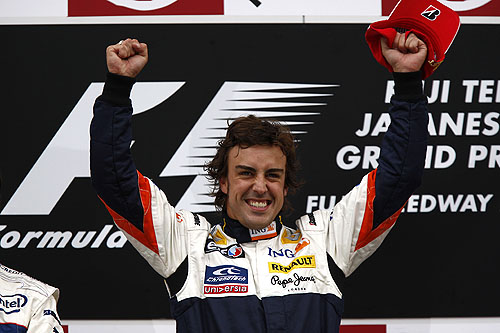 新加坡站,第15位起跑的F.Alonso竟然站上了睽違近一年的頒獎台、而且是最中央位置!從該場的狀況來看,你覺得他是運氣好,但其實他的決賽最快單圈名列第三、僅次於兩輛Ferrari!好,你要說街道賽路面窄、跑在前面的本來圈速就會比較快,那麼,日本站可不是街道賽、而且還有現時全F1最長的一條直道,對於車速而言是完全一翻兩瞪眼,但F.Alonso的決賽最快單圈仍然名列第三、亦僅次於兩輛Ferrari……要知道,Ferrari是今年乾地上的最快賽車,而Renault依然可以緊追其後(並且N.Piquet名列第四,足證確實是車快)!