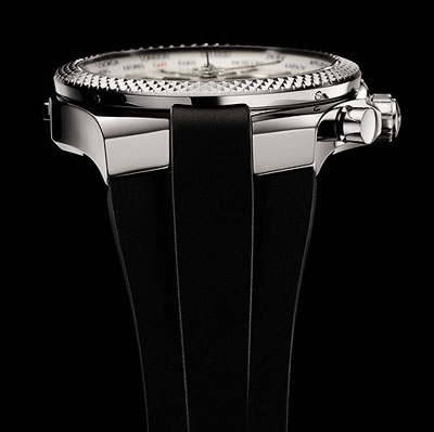 | 錶圈具有Bently鮮明的的水箱罩格柵設計,新款GMT功能可以推算世界時區,以24小時時區為一週,並且帶有計時碼錶功能。機芯:Breitling Caliber 47B,自動上鏈,高震頻〈每小時28,800次〉,38顆人工紅寶石軸承,24小時第二時區顯示,精確計時功能1/8秒,30秒15分鐘和6小時累計器,日期顯示,瑞士官方天文臺認證中心〈COSC〉認證,錶殼為精鋼和18K紅金,防水深度達100米,附有時區刻度的旋轉錶圈,雙面防眩處理的弧形藍寶石水晶表面,直徑49mm,錶帶/錶鏈:GMT黑膠錶帶及鏈帶。 建議售價:NT$:348,000 (鋼款撘配GMT黑膠鍊帶)、NT$ 384,000 (鋼款撘配霧面鍊帶) |