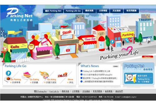 車輛中心於2008年起接受經濟部技術處指導,成立之ParkingNet商圈生活服務網www.parkingnet.org.tw(圖1),已於2008年12月10日正式啟用,免費提供台北市「信義商圈」停車、餐廳、藝文等即時資訊服務與最佳停車場建議,以解決都會區停車問題。ParkingNet商圈生活服務網,是一個以「停車場」為服務核心,延伸到商圈週遭生活資訊的網絡(Net)加值服務平台,隨時隨地上網,讓你行車不論工作或休閒,生活隨時不塞車、美食隨時吃的到、藝文隨時能掌握。