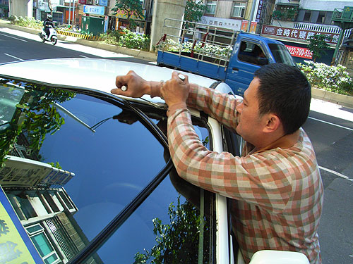 由於最近艷陽高照、晴空萬里,困擾筆者許久如雪花般的前擋更換事宜,也決定在12/4進行,當然前擋風玻璃有分正廠、進口及國產三種,不過以GD車系而言正廠的前擋風玻璃價格更是高達兩萬多元,對於現在如此蕭條的經濟狀況來說實在是太過昂貴,因此就將目標轉移到所謂的進口及國產身上,進口與國產的價格約差一千元,所以就忍痛更換進口前擋風玻璃,而這次施工是請到位於內湖的國揚汽車代為施工,約1小時後發現,這個世界多麼清晰、多麼美好,前擋也不再下雪,人生變得更有意義了!