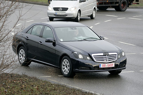 狗仔此次拍到的照片雖證實過去對新E外型的推測,但類似上一代Lexus GS的頭燈爭議仍未找到解答,不過從主燈架構可看出上半部可能加入與C-Class類似的燈眉,亦可能提供ILS(Intelligent Light System) 主動照明控制功能。其他設計方面,車身線條延續現行S-Class的手法,側面劃上一道前傾肩線,前引擎蓋兩側加入更豐富的立體角度,前保桿下方的飛鏢型霧燈會使用LED技術,位於兩側後視鏡的方向燈則取自GLK,而獨特的後葉子板輪弧則是辨認新E的主要特徵之一。