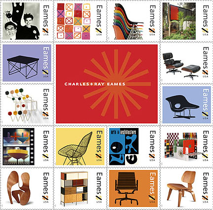 對於獲獎無數的這對美籍設計夫妻檔,祖國當然要傾力相挺。針對Charles Eames一百周年紀念,美國郵局(USPS)特別發行一套面額為42分的郵票,以感念這對國寶級設計家。郵票上的圖樣包括Eames夫婦、LCW Chair、Lounge Chair & Ottoman、Plastic Chair,及他們位於南加州住屋的照片。