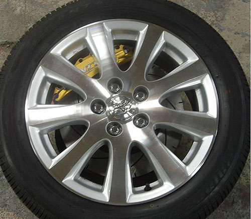 此大六活塞卡鉗精巧美觀,原廠輪圈即可直上,不需要用輪距墊片,提供車主經濟方便的選擇。整組包含1.六活塞卡鉗:採用2024鋁合金材質,具輕量化及優異強度,不需更換總泵。2.特殊競技版專用碟盤:工作溫度達0~900℃的耐高溫航鈦合金材質製成。3.專用來令片:有競技/進化/運動版本。4.金屬油管:高耐用度的雙層鋼質油管。5.轉接座。17吋輪框搭配330mm碟盤。