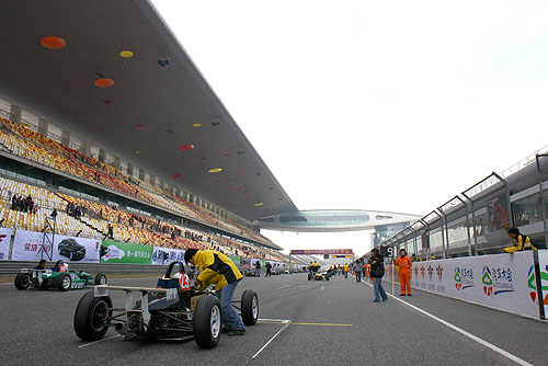 12月分的上海碰到北方高壓冷氣團來襲寒氣逼人,這是筆者對上海的第一印象,零度以下的寒風吹過臉龐,彷彿家中冷凍櫃不斷向外釋放冷度,雖然自己身體還能挺的住寒風的襲擊(怕冷的國內車手早已穿上數件衛生內衣褲),但地面悄悄降低溫度也為週末的威速方程式賽事帶來新變數,「冰風」除了造成參賽車手身體反應更為遲緩之外,極低的氣溫更是將熱熔胎給層層冰封,即使面對難度極高又具挑戰性的「上賽道」,熱熔胎在此同樣毫無發揮空間。