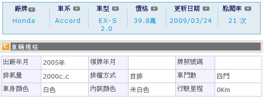 ESSO友達汽車SAV優質保護聯盟最新上架 2005 Accord 39.8萬