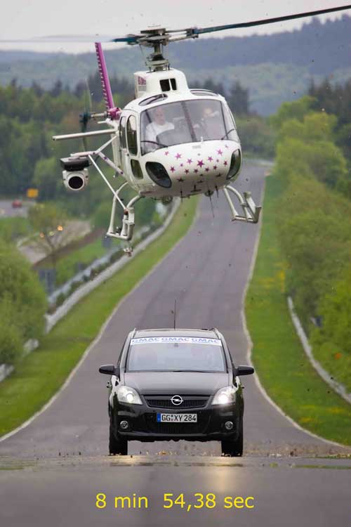 | Zafira OPC在紐伯林北賽道,創下8分54秒38的世界最速七人休旅車紀錄。 |