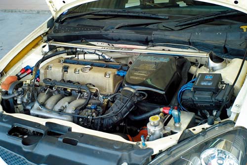 | iBuddy Club DC5原廠所搭載K20A引擎可輸出約275匹最大馬力,但礙於原廠FF設計屬性與車身過重,參賽競爭力稍嫌不如競爭對手。 |