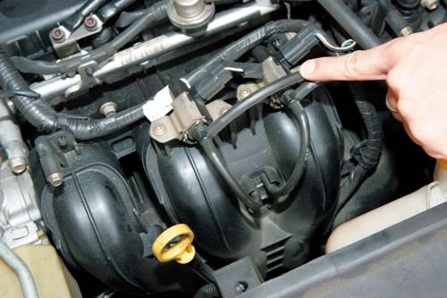 | 在集氣箱上也有控制進氣路徑長短的電磁閥,這也是2.3L引擎獨有的設計。 |