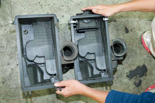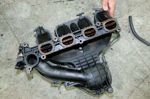 | 下方體積較大者為VIS可變長度進氣歧管,另一則為一般2.0L所使用的進氣歧管。 |