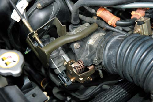 | 手指頭所按住的兩顆電磁閥,為2.3L引擎才有的VIS可變長度進氣歧管控制裝置,雖然能兼顧低中高速的扭力輸出反應,但由於控制系統複雜,因此2.0L引擎想流用是不可行的。 |