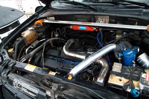 這輛Escape為2000年2.0車款,原廠動力僅有132hp/5400rpm、與18.7kgm/4500rpm的動力表現,驅動達1480公斤的車身重量,實在是相當沉重的負擔,加上車輛已經有了一定的年紀,每當車主開這輛車載著全家人,開著冷氣在山路上,就會有著恨鐵不成鋼的感覺,且油耗表現也只有6∼7km/L的水準,因此才會興起動力改裝的想法,在試過許多效果不彰的動力改裝術之後,車主最後只好投向渦輪化的懷抱裡,將車輛交由北都社阿文來進行後續的動力改裝升級,藉此來提昇此車的動力。在施工前阿文發現由於之前的引擎已經老舊,因此還特地找來一具狀況不錯的Zetec本體,並且在施工時換上凹頂活塞來降低引擎壓縮比,並外掛一顆TD-04HL渦輪本體。