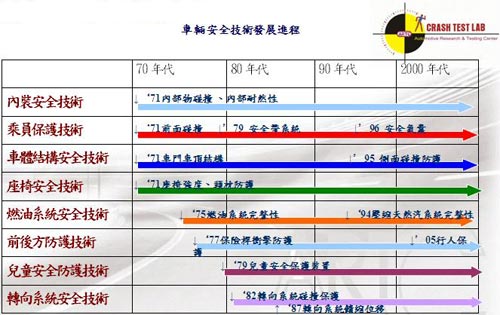 為了趕上國際車輛產業潮流,協助國內汽車產業提升設計與競爭力,國內第一座碰撞實驗室已經於民國94年落成啟用。至今相繼進行如座椅強度、汽車零組件安全性、實車碰撞、大客車車身各部規格及結構強度等多項破壞性測試,藉以與國際水準接軌,特別是對於汽車廠商,不分進口車或國產車的上市申請,不再是照單全收以保障國人購車與用路人的權益。