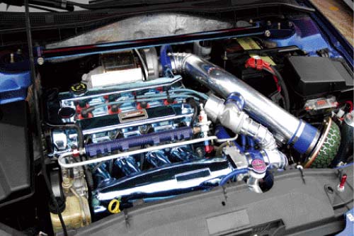 | 經過大幅改造的引擎本體,腹內換上Cosworth強化活塞、Eagle鍛造連桿、ACL強化大小波司、搭配曲軸萬轉平衡加工,以及汽缸頭的進排氣拋光、燃燒室重新修整、Cosworth In/Ex 255°Hi-Cam、Cosworth強力氣門彈簧/鈦合金氣門帽,以及Cometic強化汽缸床墊片壓縮比降為9.0:1,耐用度大幅提昇。 |