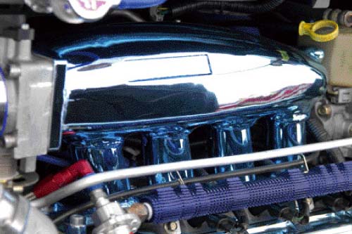 | 換裝Tuner自製的進氣歧管,搭配流用自Nissan Pulars N15N1的70mm節氣門,讓渦輪大出時的進氣效率徹底提昇,高轉速表現更為優異。 |
