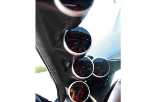 | A柱上的Defi Meter五連星,不僅可以隨時掌握引擎工作狀況,同時也說明了此車的改裝幅度 |