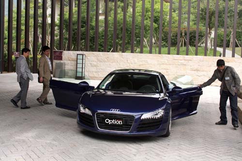 | 試車當天R8停在礁溪老爺酒店中庭,它就好比像是一件藝術品在陳列展示著,甚至吸引不少識貨的日本觀光客上前打量,不禁讓試駕媒體一行人虛榮感十足! |