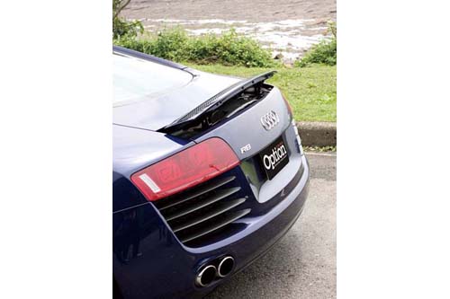 R8原廠尾翼不僅擁有車速達100km/h以上自動升起、35km/h以下收回的自動控制功能,駕駛者亦可透過排檔座後方按鍵直接手動控制。 |