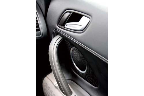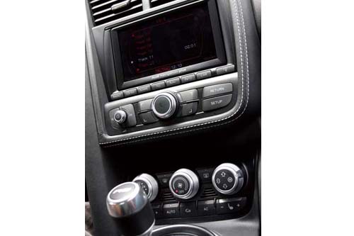 坐在駕駛座眼見前方儀錶總成內除了顯示有讓人情緒沸騰的錶底轉速9000rpm與最高時速350km/h,四周還有水/油溫、油量與電壓等數據,搭配中央DIS液晶螢幕顯示提供檔位、換檔模式等駕駛資訊。中控檯上MMI線傳多媒體系統整合有相當實用的倒車螢幕顯示功能,而車內超高檔的丹麥名廠B&O音響全車12支喇叭配備,更是讓R8有著「世界上跑得最快的歌劇院」之美名!