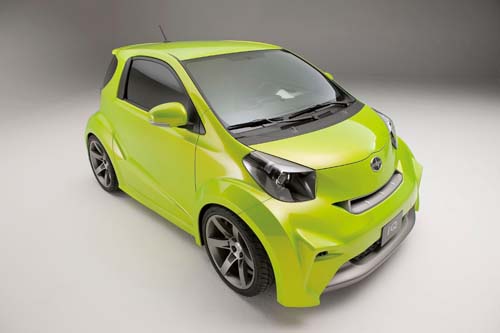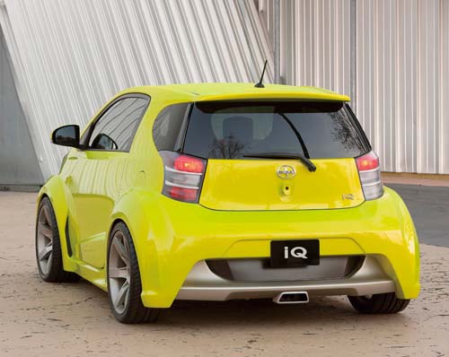 在Toyota iQ造成的歐美「迷你」衝擊尚未平息之際,同集團的Scion冷不防於紐約車展發表名為「iQ Concept」之雙生車款。雖然車名相同,但Scion的iQ硬是像打了類固醇般,渾身肌肉感十足。誇張的外擴輪拱下,隱藏著極為向車身四個角落延伸的寬幅輪胎;六爪式輪框還帶點中央內凹造型,配上原廠大包可說是殺氣騰騰!和Toyota iQ相比,彷彿就是Sporty與乖乖牌的對照。