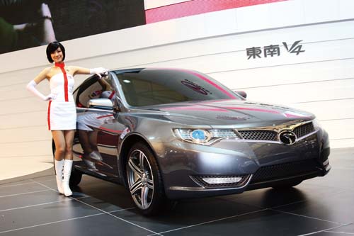 由台灣中華三菱汽車轉投資的「東南汽車」,近來新車銷售屢創新高!主要是旗下「V3菱悅」大受歡迎,雖然是以上上代Lancer為基礎進行修改,但卻配上一具三菱製造的1.5升MIVEC新引擎,再加上只賣不到30萬台幣的價格,無怪乎搶手到工廠得加班趕工才能交貨!會場上有兩部概念車-V4與V5,雖然前者號碼較小卻是新車款,因後者在去年「北京車展」已經展出。
