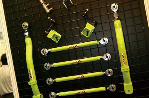 以底盤強化套件外銷海外市場的貝爾適,今年參展主力商品除了有直徑達50mm的減震筒,對於近來市面上所出現外掛氮氣瓶的競技懸吊系統,今年同樣也展出對應改裝產品。