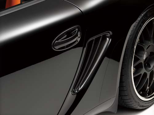 | 除了外觀改以性能化空力套件加以輔助,Gemballa特別增加的碳纖維飾板也讓黑色系車身的視覺感受更為搶眼。 |