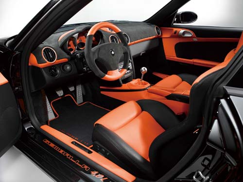 | 為了營造Gemballa GT 4.0 RS不凡的性能氣勢,設計師特別以高反差亮橘Alcantara真皮配上大量麂皮,以呈現不凡的性能風格。 |