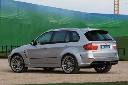 近年來在BMW車型上屢屢打造出超高性能的佳績,終於讓G-Power成立的25個年頭以來奠定不可輕易撼動的改裝技術,不過工程團隊除了針對性能房車加以著墨,今年更是以BMW X5(E70)完成強力颶風車型,就外觀上新款X5早已具有強烈的肌肉線條,不過這樣「過於樸素」的空力造型似乎還無法滿足G-Power的終極目標,為了保有更好的撞風效應,同時冷卻V8引擎所產生的高熱與增加進氣效率,特別加大的前保桿進氣壩盡可能在造型設計上符合視覺與流體力學效果,因此高速時還能額外增加車頭下壓力以穩定車身動態,而車側為了迎合寬車體線條所打造的暴龜式樣不但營造出霸王氣勢,額外增加的輪圈J數還能讓輪胎抓地面積大幅增加,車尾方面則是以後保桿下擾流與車頂尾翼以穩定氣旋亂流,同時配合上中置排氣管以展現出超高性能特性。
