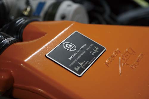 | 由工程師組裝完成機械增壓套件後,G-Power特別在銘牌上標示產品編號與工程師專屬簽名,以展示對於自家產品的絕對信任。 |