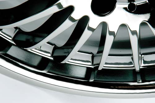 鋁圈科技到了近幾年有了突破,不僅造型多變萬化,顏色也可說是千奇百怪,鋁圈製程的最後一道加工不再僅限於烤漆,開始流行起鍍鉻的顏色,早期國內電鍍的技術不夠成熟,常聽到容易刮傷、掉色的問題,不過現在的電鍍技術進步了,不但亮度足、質感佳,抗磨性與耐用度皆有提昇,而且不再是單純的亮面電鍍,還可以鍍出豐富的顏色。