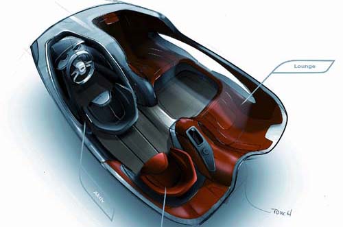 | 座位甚至可從前座移動至正常車輛的後座位置,並且將之區分為駕駛模式(Active Mode)與休閒模式(Passive Mode),後座中扶手亦裝上類似MMI的多功能控制界面,以維持對車輛的控制能力。 |