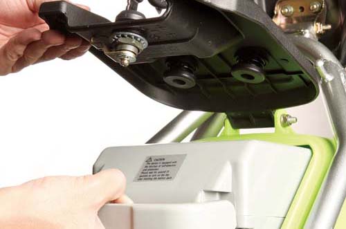 | 座墊下是收納電池的空間,打開附鎖的電池蓋即可將之抽出充電 |