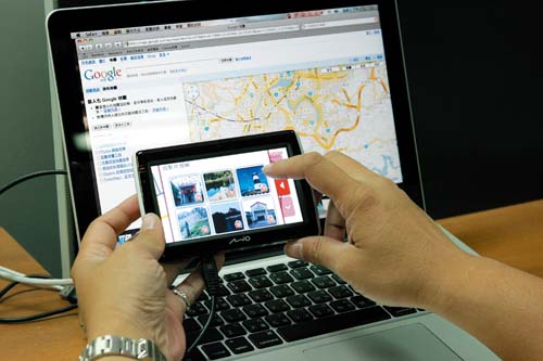 擁有全球資源整合的Mio,特別與Google結合,為使用者帶來全新的整合性服務,在電腦上透過Google Maps搜集景點資料,可直接傳送到Mio GPS,做為旅途規劃的景點。此外,透過藍牙與可上網手機的連線,便可依所在地位置,快速搜尋所在地附近景點(Google在地搜尋),隨時隨地都能掌握最即時的景點資料。透過這樣的合作就是希望整合網路地圖的功能,提供真正的在地智慧與便利,不但快速到達目的地,更不用花時間找路,可為廣大使用者帶來更多個人化的便利服務。